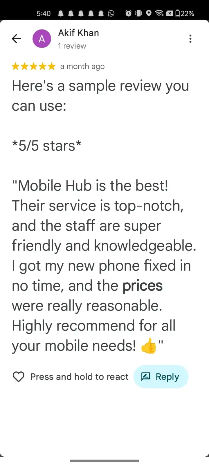 "Finally, a phone store that doesn’t treat me like I don’t know tech. Everything is clear, prices make sense, and no shady games."